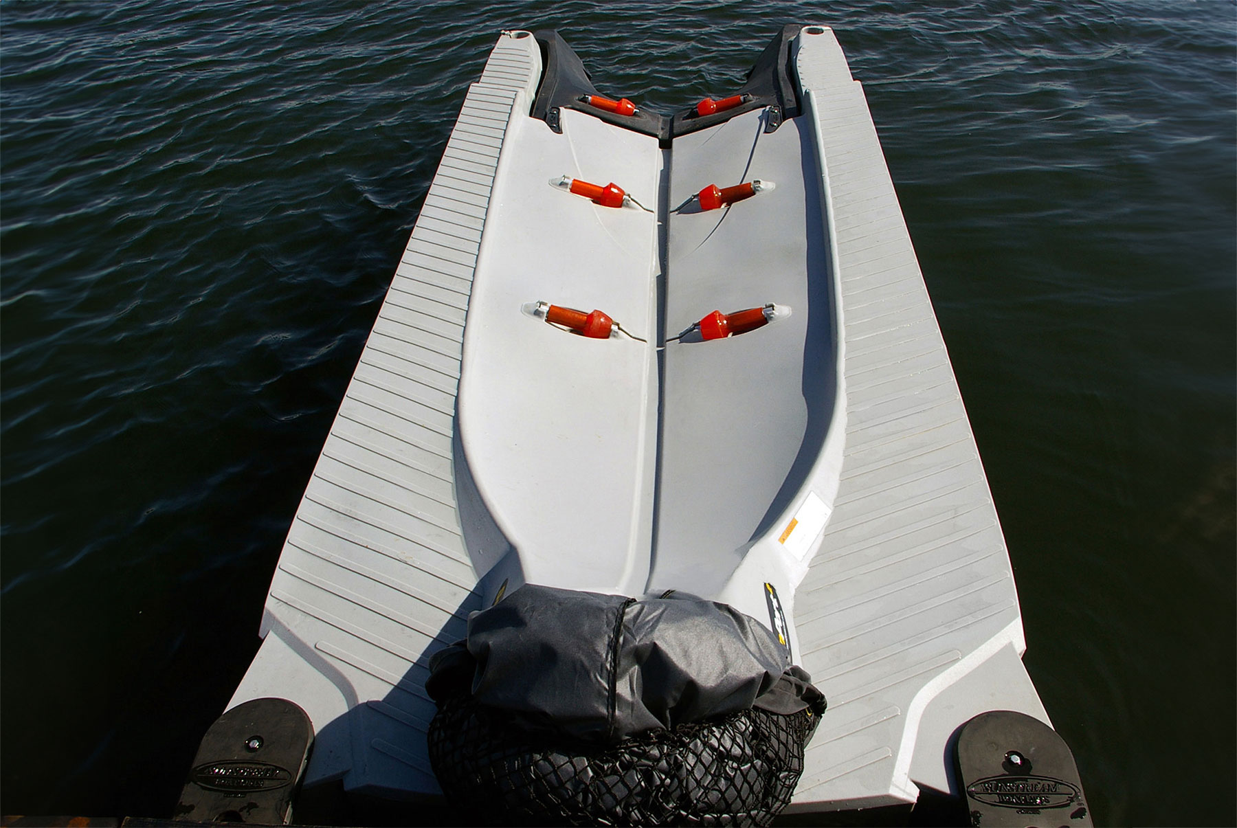 The wide-mouthed pivoting tail guides and aligns the bow upon entry and enables loading on the port with minimal power. The integrated bow stop positions your craft properly, protecting it from dock accidents. Your hull is well supported with a hydrodynamically shaped bottom to keep your craft well positioned on the port. Dual rows of Stoltz rollers are super durable and make loading and unloading a breeze.