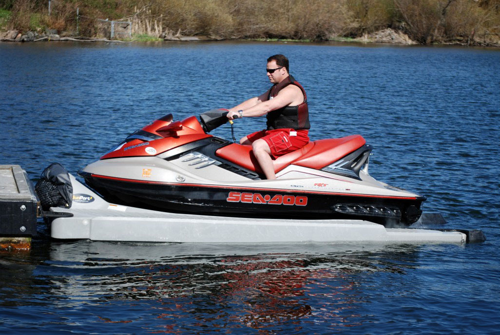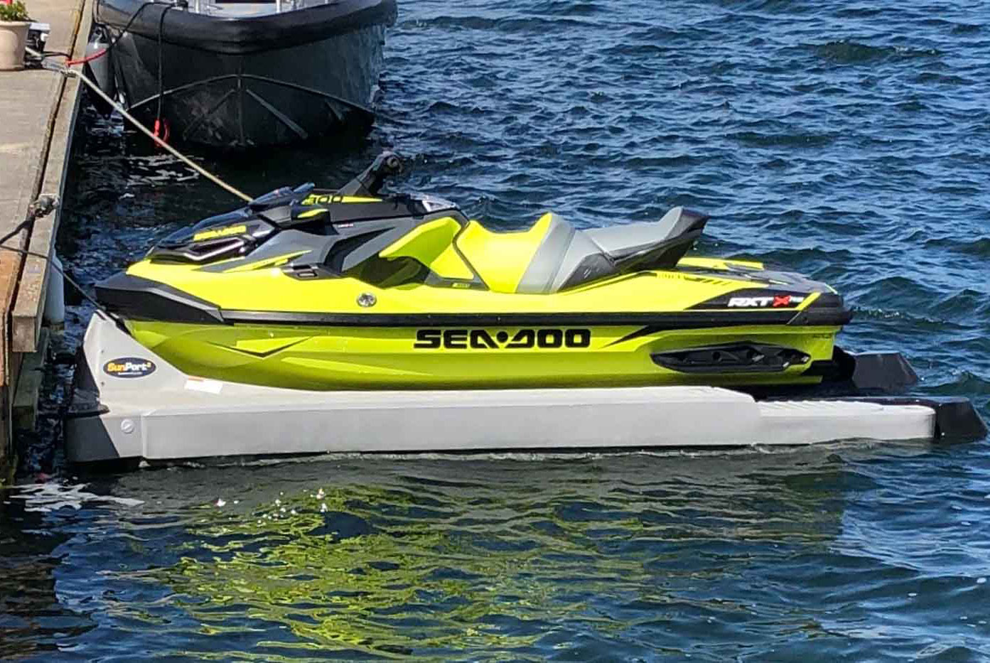 Smooth loading, durable and secure, the SunPort2™ floating PWC port puts the fun in function. Like all Sunstream products, the SunPort2™ was designed to get you in and out of the water as quickly as possible. Ready for anything, you can use the SunPort2™ with our slide mount for fluctuating water levels, or using the Sunstream Duraflexx™ mounts that reduce stress on floating docks.